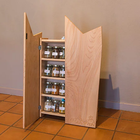 Necklace and jewelry wall rack from CNC-routed Baltic ply.