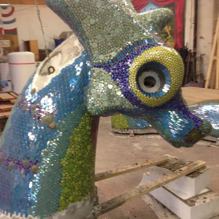 A giant sea-monster for the Mueller Development with mosaic artist Dixie Friend Gay.