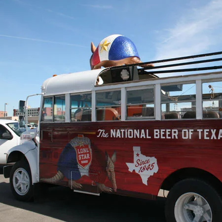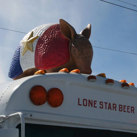 A Texas armadillo for Lone Star Beer's party bus.